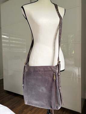 HOBO Treaty Gray Metallic Leather Crossbody Bag with Studded Strap