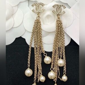 100% authentic Chanel long dangling earrings comes with Chanel box and receipt