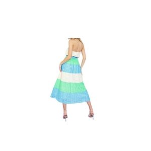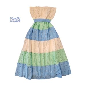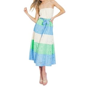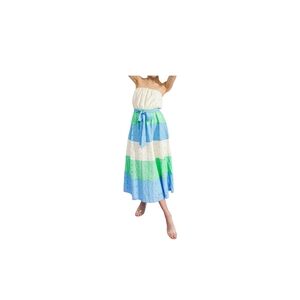 NewWOT Flying Tomato Strapless Midi Dress Cream, Blue & Green Stripes - Small