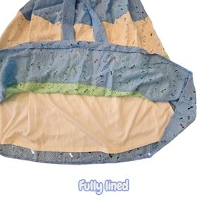 Colors may vary due to screens/monitor resolution. Dress is cream, turquoise and blue.