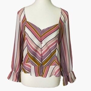 Lipslide Pink and Neutral Striped Cropped Button Down Top