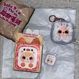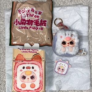 Soft faux-fur with embroidered facial details and a secure metal key ring. Cute collectible for bags, keys, or gifts. Includes matching themed packaging and face card. Shows the Little Mahjong brand on packaging.