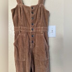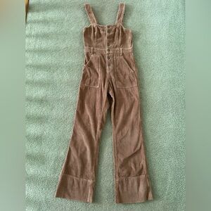AERIE Tan Corduroy Kick Flare Bottom Bib Overalls Jumpsuit size XS