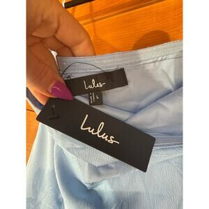 NWT Lulus Gemmi Light Blue Satin Jacquard Drop Waist Maxi Dress Cocktail Sz L