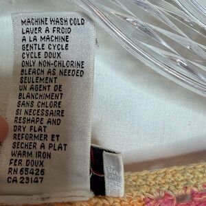 Vintage retro melon/sorbet multicolor patch look doilies sweater in a size small. Pullover style. 3/4 sleeves. Lightweight for spring and summer.