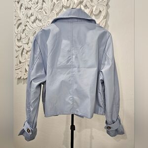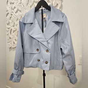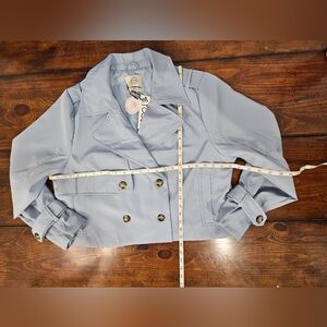 Sky Blue Women's Cropped Trench Coat/Jacket Water Resistant Sz Large NWT