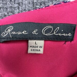 Rose & Olive Sleeveless Shift Dress L Pink Navy Printed Lined Boho