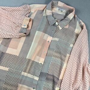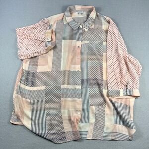 Rose + Olive Womens 3X Pink Mixed Geometric Polka Dot Button Down Blouse Top