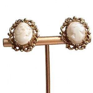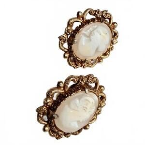 Vintage Florenza Victorian Revival Cameo Clip-On Earrings