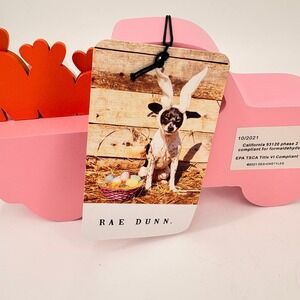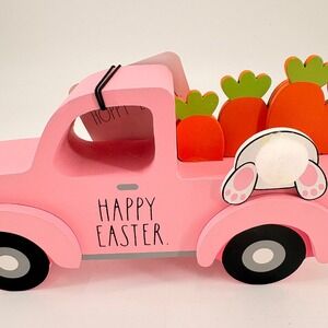 NWT Rae Dunn Pink Wood Truck Happy Easter Bunny Carrots Tabletop Decor