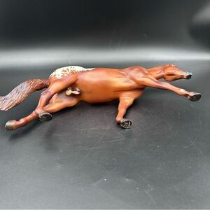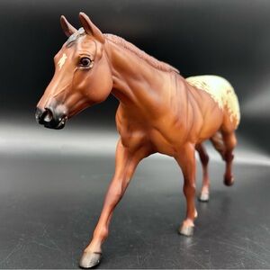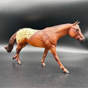 Breyer horse model “Chocolatey”, featuring a beautiful bay coat with a classic Appaloosa blanket pattern. This western-style stock horse sculpt is a favorite among collectors and makes a great display piece.