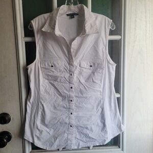 Zac & Rachel Womens White Sleeveless Button Down Shirt XL Tailored Career Top