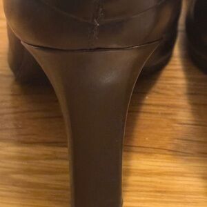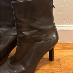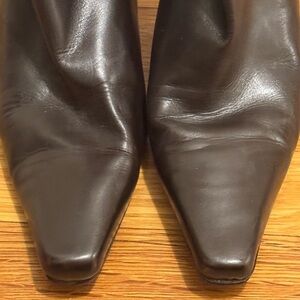 Beautiful booties. These are in very nice gently loved condition. Worn once. A snipped style toe. Zips up the back. There is a smudge on the sole. See photos. Quality leather boots.