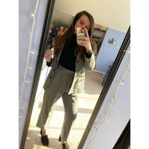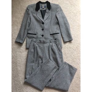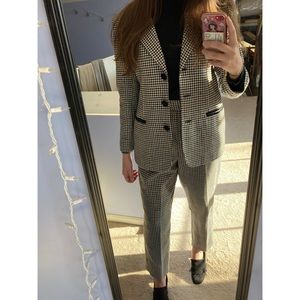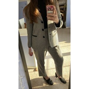 Vintage Wool Houndstooth Checkered Pantsuit Set