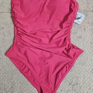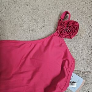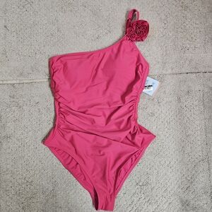 Shade & Shore One-Shoulder Ruched Rose Detail One-Piece Swimsuit Size: Large NWT