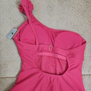 Make a bold, feminine statement poolside or at the beach with this stunning one-piece swimsuit from Shade & Shore. Designed in a vibrant hot pink hue, this eye-catching piece features a chic one-shoulder silhouette accented by a beautifully crafted rosette detail at the strap for an elevated, fashion-forward touch.