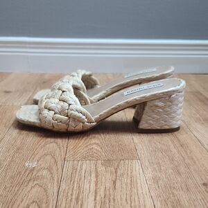 STEVE MADDEN Corak braided natural rafia upper block heel slide sandals size 6.5