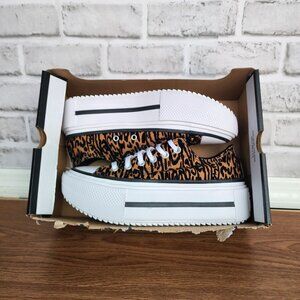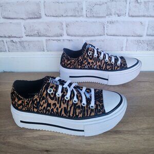 Eye-catching tiger print sneakers with a sturdy platform sole and classic Converse styling. Comfortable, stylish, and suitable for casual outings.