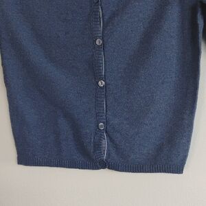 This blue cardigan from Mossimo Supply Co. features a fitted silhouette and a classic scoop neckline, crafted from a soft knit material. Its versatile design makes it a perfect addition to any wardrobe, offering both comfort and style. made with 100% soft and comfortable cotton materials. Great layering piece. Please zoom in photos for the best description.