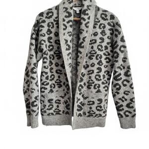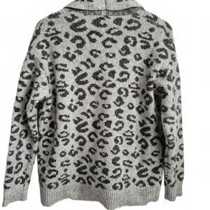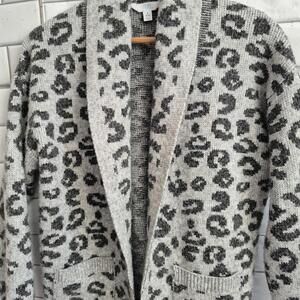 Time And Tru Ladies Gray Leopard Print Open Front Cardigan Sweater Shawl Collar