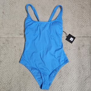 S3 Swim Ribbed One-Piece Swimsuit – Lake Blue (Size L, NWT)