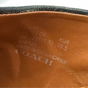 Features: Metallic silver-tone Coach logo hardware on the toe; slip-on style.