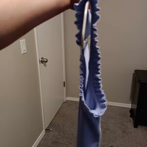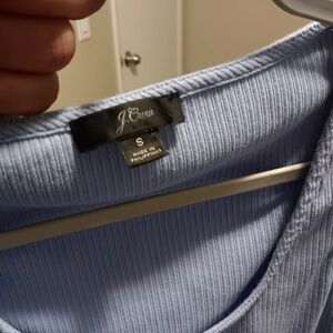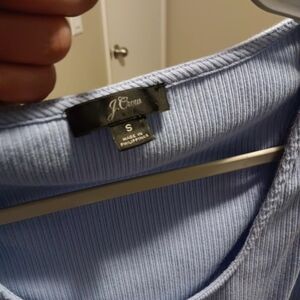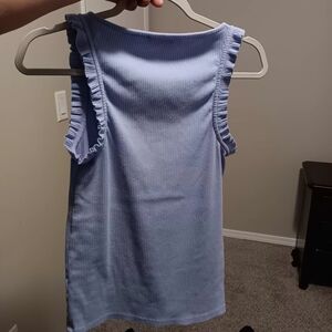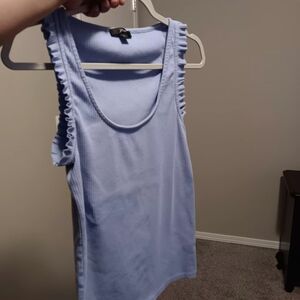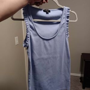 J. Crew Light Blue Ribbed Ruffle Strap Tank