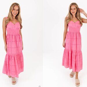 J Marie Presley Eyelet Midi Dress Womens Medium Pink Lace Lined NEW
