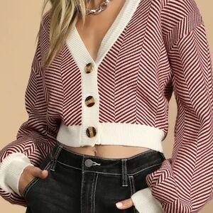 Lulu's Here Comes a Holiday Red and White Striped Button-Up Cardigan Sz M - NWT