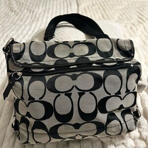 Coach daisy crossbody/shoulder bag with signature monogram. Black and gray tones. Ideal for work or school. Fits laptop.
