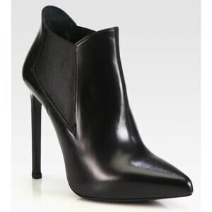 Yves Saint Laurent pointed toe chelsea ankle Booties in black leather in a size 39.5 EU ( 9.5 US) . Saint Laurent black smooth calfskin point-toe Paris boots detailed with elasticized ankle gores.