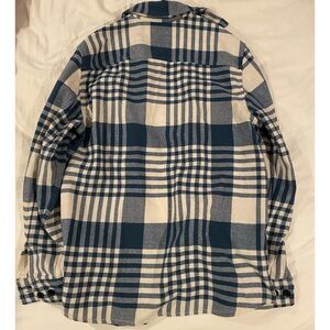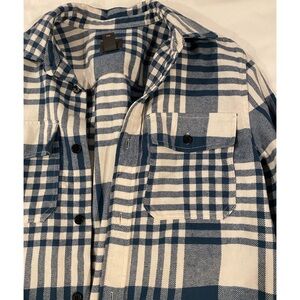 H&M long sleeved button down plaid shacket. A little but thicker fabric than a regular flannel. Size medium.