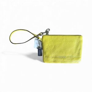 β¨ NWT Coach Chartreuse Pebbled Leather Wristlet w/ Purple Hangtag | MSRP $68 β¨
