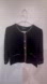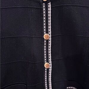 Chic black cardigan with elegant gold trim. Ideal for versatile styling.