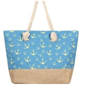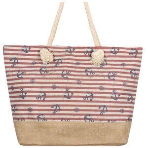 New large red, white, blue nautical tote. Has rope handles. Back and front are the same.