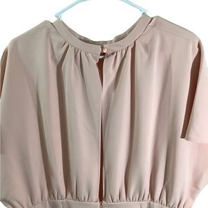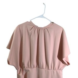 Elegant blush pink midi dress by ASOS. Soft draped bodice with gathered neckline. Short flutter sleeves for a feminine touch. Fitted waist and straight skirt. Versatile, minimal silhouette. Reposhing, turned out to be just a bit big on me.