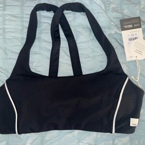 Comfortable black sports bra with contrasting white piping for a sleek look. Supportive scoop neckline designed for low- to medium-impact activities. Breathable, smooth fabric that moves with you. Style includes a small brand tab on the side. (NWT!!) Accidentally bought twice. Willing to accept offers.