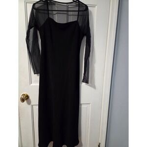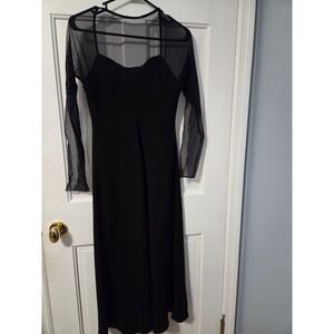 Jones New York Dress Womens 10 Black Mesh Sleeve Maxi Goth Glam Formal Evening