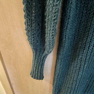 Stay cozy and stylish with this elegant dark emerald sweater dress. This dress also features slouchy sleeves with a fitted cuff. Looks great with a long cardigan and knee high boots!