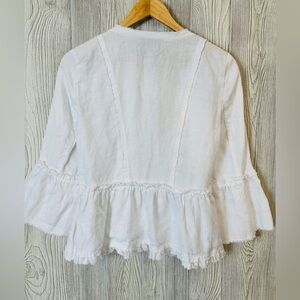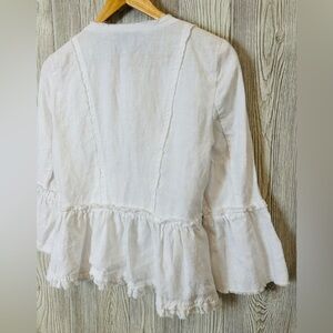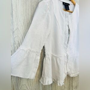 Beautiful, boho style .. white flowy linen jacket. Perfect for spring and summer at the office, out for dinner or over a dress at a summer wedding.