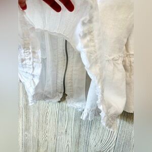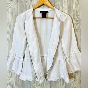 INC 100% LINEN Boho Light Zip Up Jacket Size Small White Womens Spring Summer