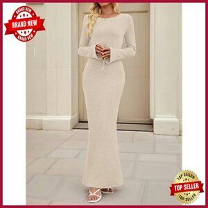 Brand new, never worn, and in flawless condition — this elegant ribbed knit maxi dress offers a sophisticated, figure-skimming look perfect for cool-weather events, from formal weddings to chic cocktail parties. The stretchy fabric is comfortable, warm, and beautifully accentuates your curves.