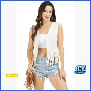 Faux Suede Fringe Vest Western Cowgirl Bohemian Style