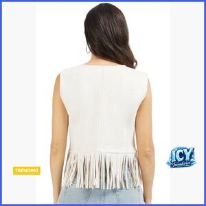 A lightweight, durable vest designed for versatile styling from everyday wear to festive occasions. Features a classic faux suede construction with a short fringe hem for easy, tangle-free maintenance and a sleek slim fit.