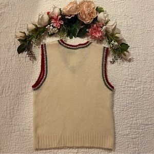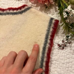 Cute vintage 90s preppy piece from Abercrombie & Fitch! Makes a great piece to style an outfit around! Cream colored wool with maroon and grey trim. V-neck. Ribbed hem.