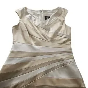 NWT! Jax Gold and Cream Satin Sleeveless Sheath Dress. Size 8 Medium, Back zipper. Fully lined.
