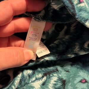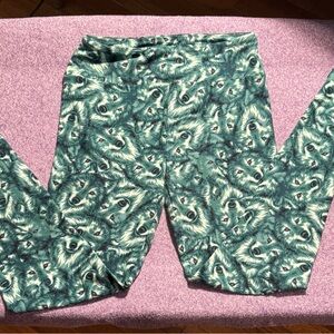 LuLaRoe Teal and Cream Wolf Face Leggings