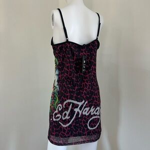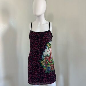 Ed hardy Black & Hot Pink Slip Dress with Colorful Snake Floral Print