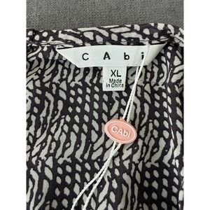CAbi Sheer Sleeveless Blouse Womens XL Black White Abstract Artsy Minimalist