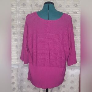 Lane Bryant Sz 24 Fuchsia Solid Tribal Aztec Faux Wrap 3/4 Sleeve V Neck Top